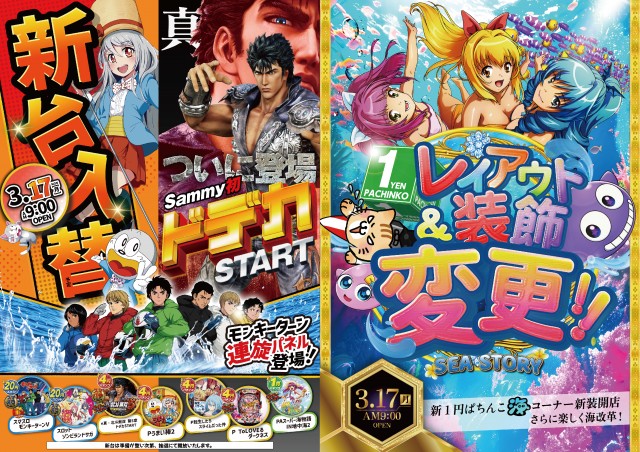 3️⃣月2️⃣2️⃣日(土)朝9時OPEN 新台入替初週末🌈