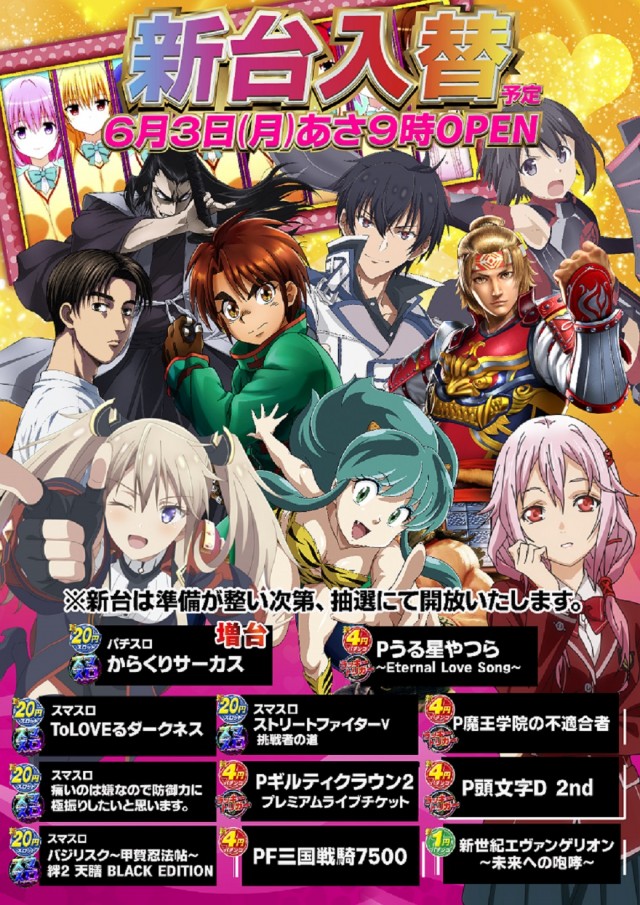 明日6.3(月)は💥新台入替 9時開店💥