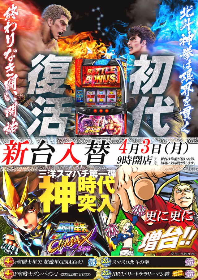 明日!新台入替3日目!話題の新台が朝イチからご遊技できます♪
