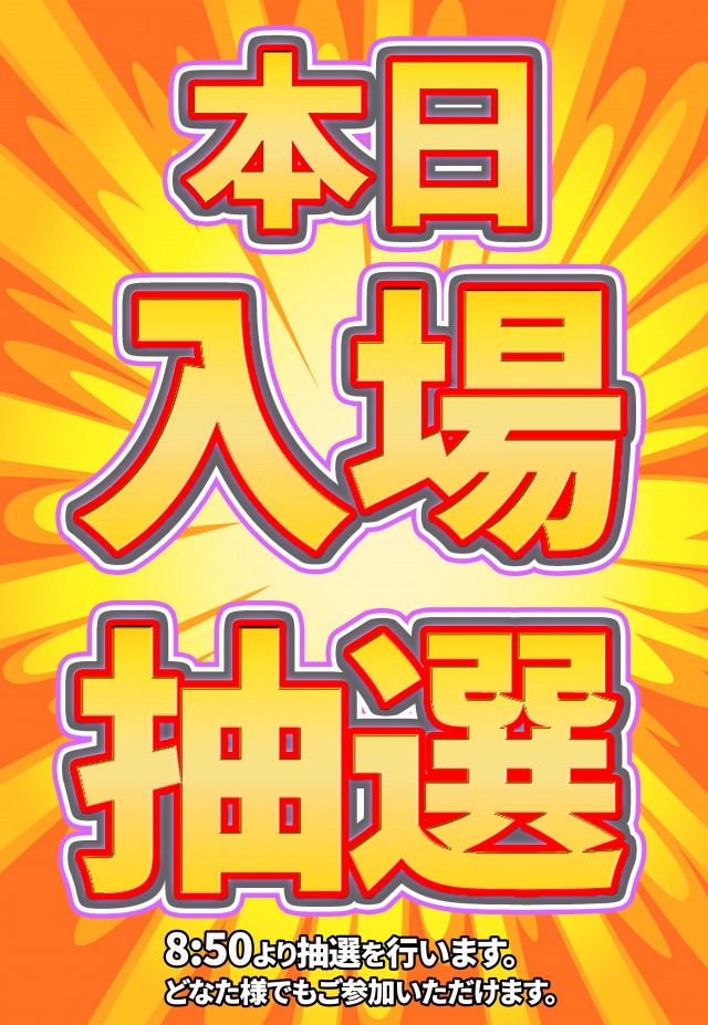 !!!本日入場抽選!!! 8時50分より抽選を開始します!