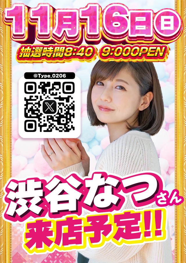 明日抽選8:40!渋谷なつさん来店&激スロ開催!!!!