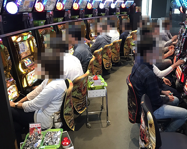 15時頃のパチスロにおいて、とくに活気づいていたのは「ミリオンゴッド-神々の凱旋-」。機種の性能を最大限に引き出せているような姿も目立っており、シマ全体がプレイヤーの笑顔で彩られていた。