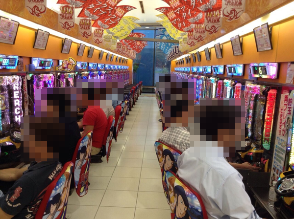 開店直後はパチンコ・パチスロともに、新台がもっとも注目されており、「CRヱヴァンゲリヲン10」や「ぱちんこCR神獣王2」、「パチスロ北斗の拳 強敵」など、ほとんどの機種が満席。