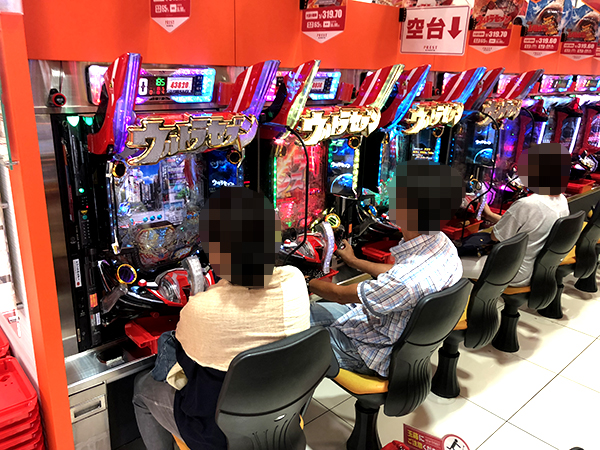 14時過ぎの4円パチンココーナーを見てみると、「CRぱちんこウルトラセブン2」や「CR真・花の慶次2」が活況の様子で、プレイヤーの嬉しそうな表情が印象に残っている。