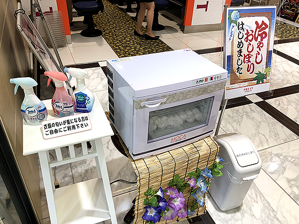 店内は清掃が行き届き、プレイヤーの受け入れ態勢は万全。スタッフの対応は明るく丁寧で、見ていて清々しい気持ちになれた。また、夏らしい冷やしおしぼりの提供や、消臭剤の貸し出しなどのサービスも用意されており、細かい心配りに好感を覚えた。
