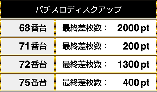 『パチスロディスクアップ』は2000ptを含めて4台がプラスpt!