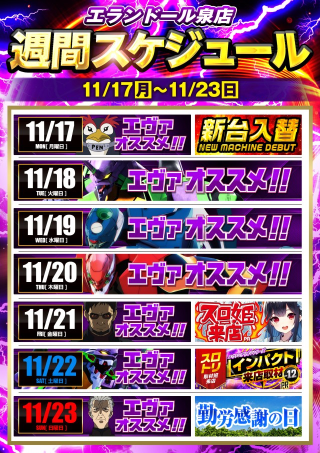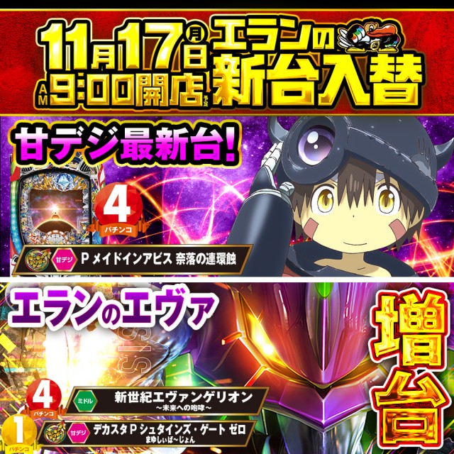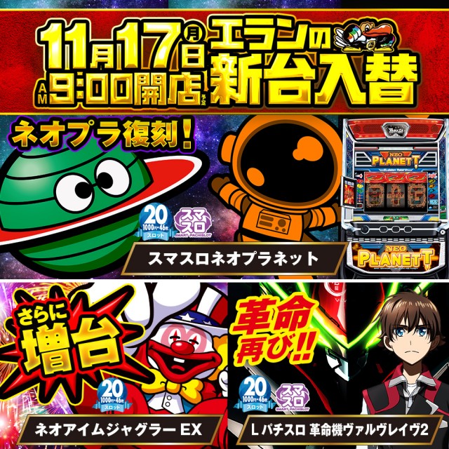 ★10月6日(月)★エランの大型新台入替★朝9時開店!