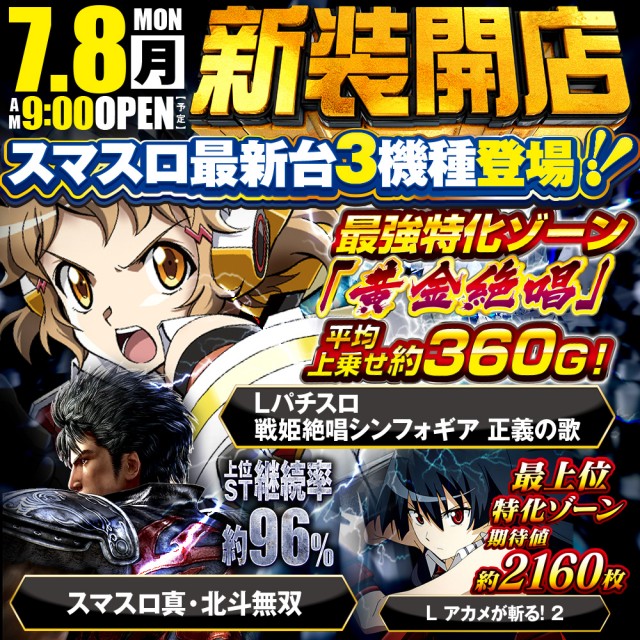 スロット➡朝8時45分に抽選開始。8時55分再整列。 パチンコ➡先着並び順入場。 |