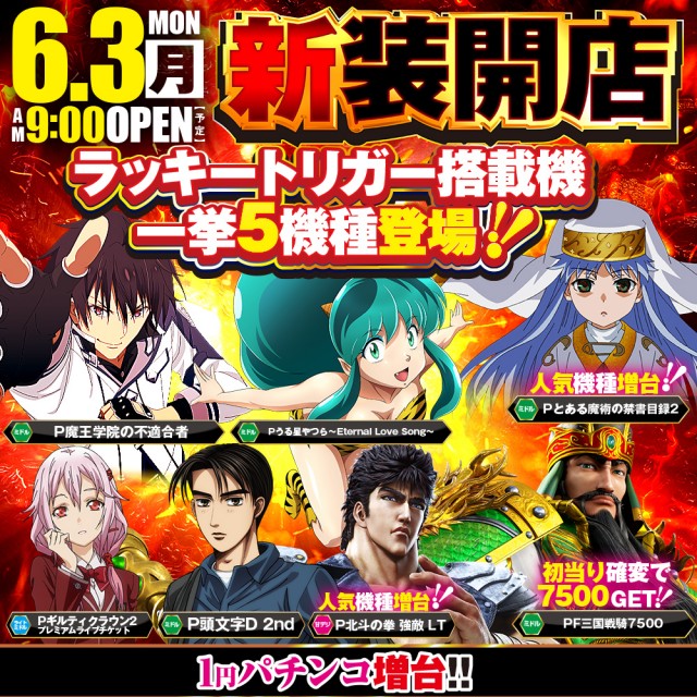スロット➡朝8時45分に抽選開始。8時55分再整列。 パチンコ➡先着並び順入場。 |