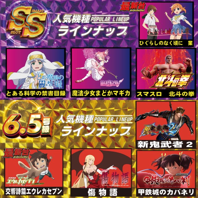 スロット➡朝8時45分に抽選開始。8時55分再整列。 パチンコ➡先着並び順入場。 |