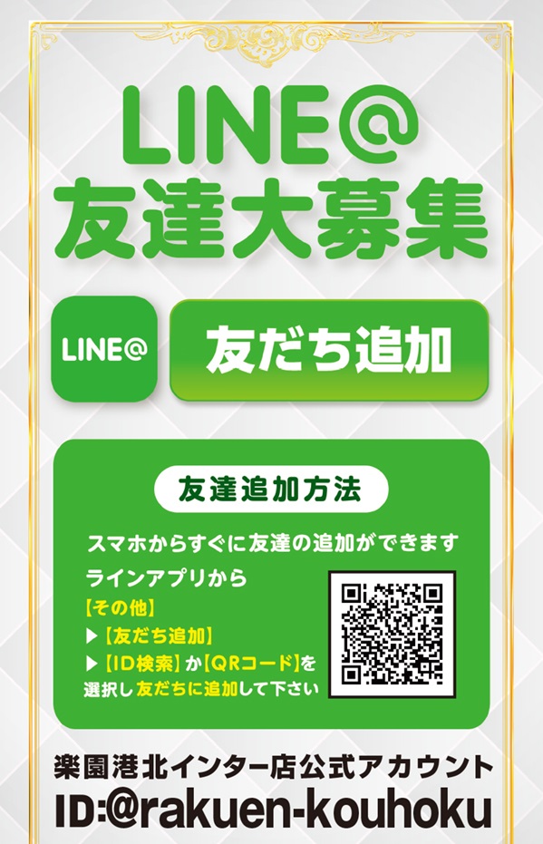 お待ちしております!楽園港北インター店