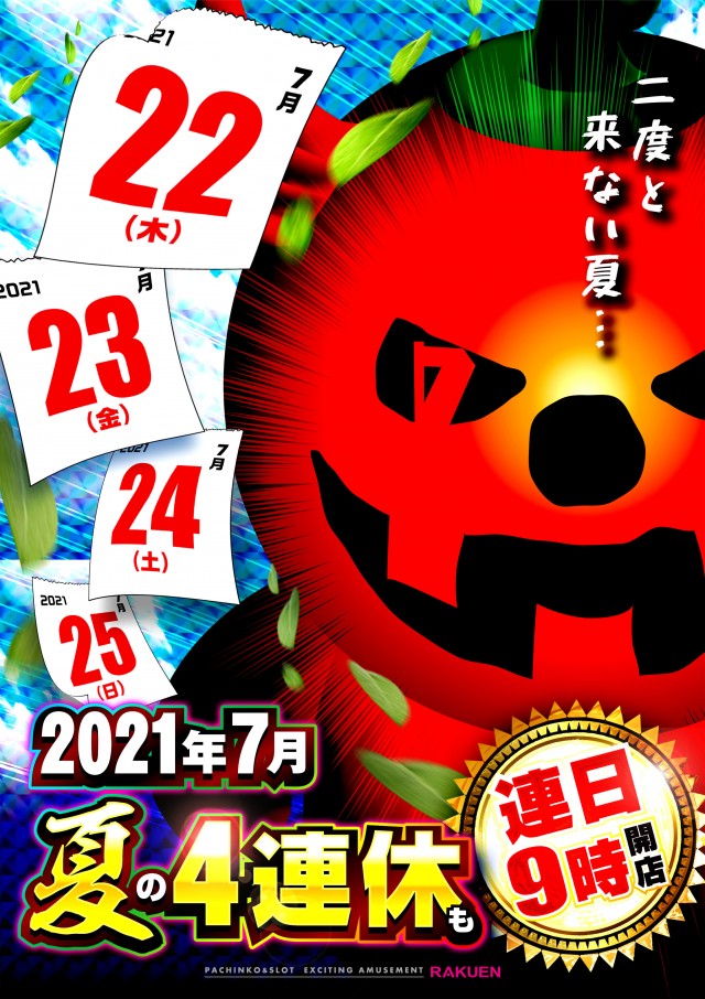 7月22日(祝) 明日も楽園でお楽しみ下さい‼
