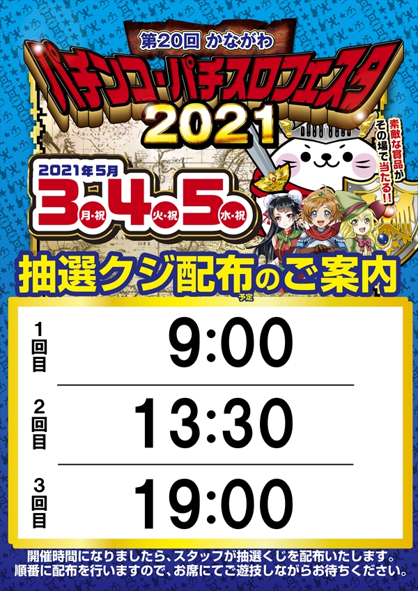 抽選会は8時40分より開始いたします。再整列は8時55分に行います。 |