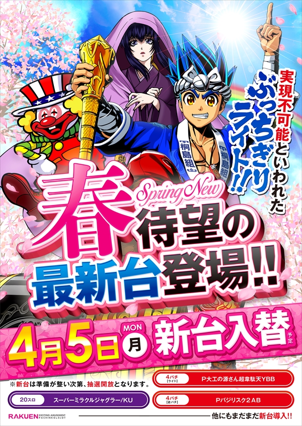 明日4月5日(月) 新台入替初日です!
