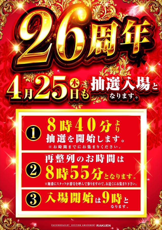 抽選会は8時40分より開始いたします。再整列は8時55分に行います。 |