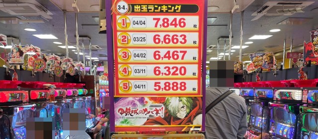 後述する2機種以外では、『パチスロ炎炎ノ消防隊』では+4千4百枚超&+2千3百枚超が1台ずつ、『沖ドキ!GOLD』が+4千1百枚超、『パチスロ ガメラ2』が+3千9百枚超、『パチスロ 新鬼武者2』には+3千7百枚超と、新旧幅広いラインナップに好調台が生まれた。