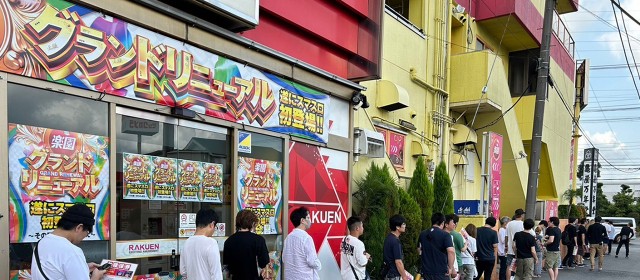 記念すべき「英雄のリアル」デビューとなったのが「楽園港北インター店」。同店は前日の8月8日(木)にグランドリニューアルを果たし、新たに50台を超えるスマスロが導入されている。