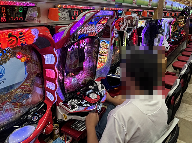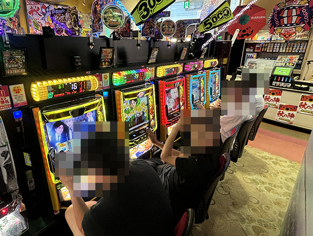 プレイヤーたちは、1箱クラスの持ち玉を使い、うれしそうに遊技中。