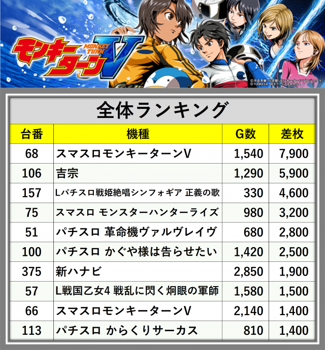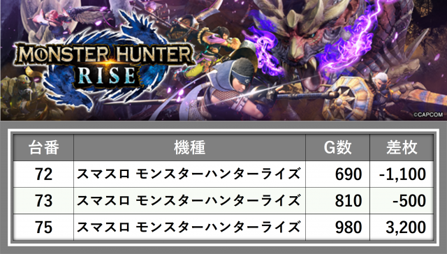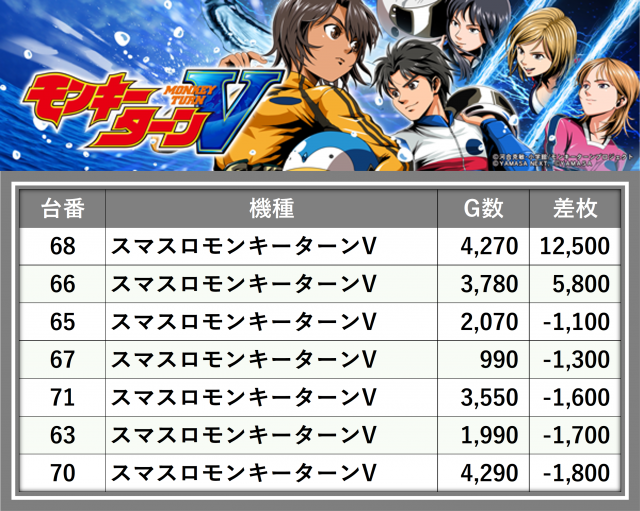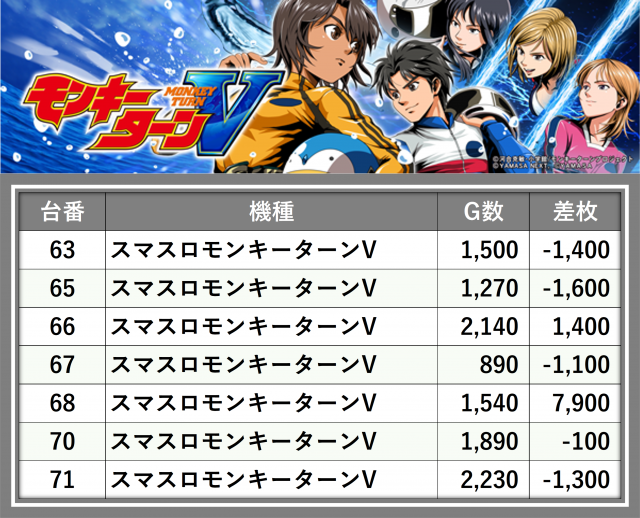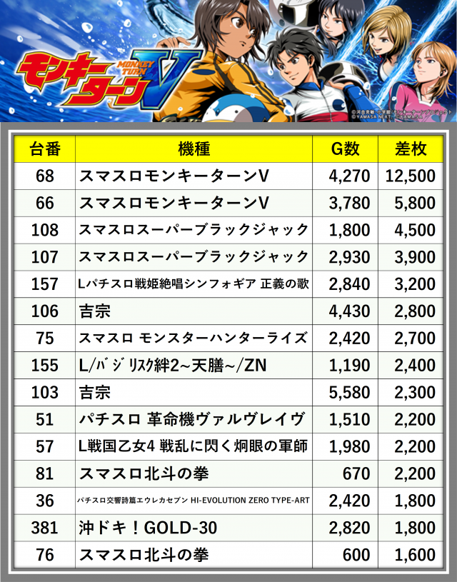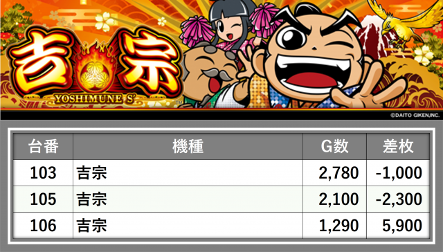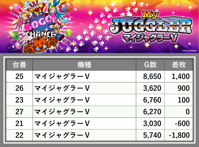 厳選された取材対象機種をはじめ、その他スロット全体から好記録が飛び出した!プレイヤーが楽しんだ1日を下記データにて振り返ってみて欲しい。