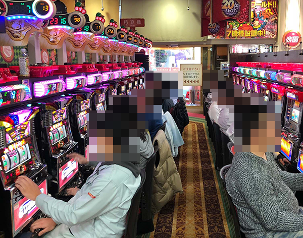 「マイジャグラーⅢ」が空き台も見当たらないといった状況。