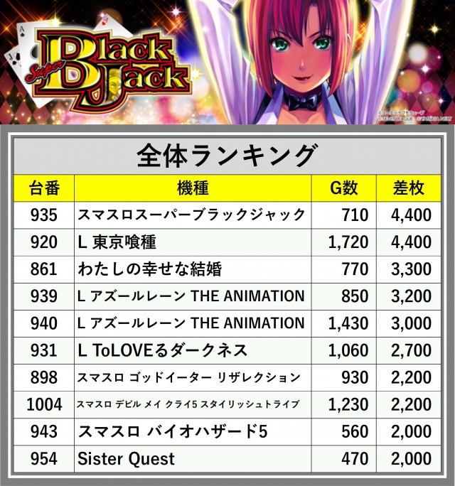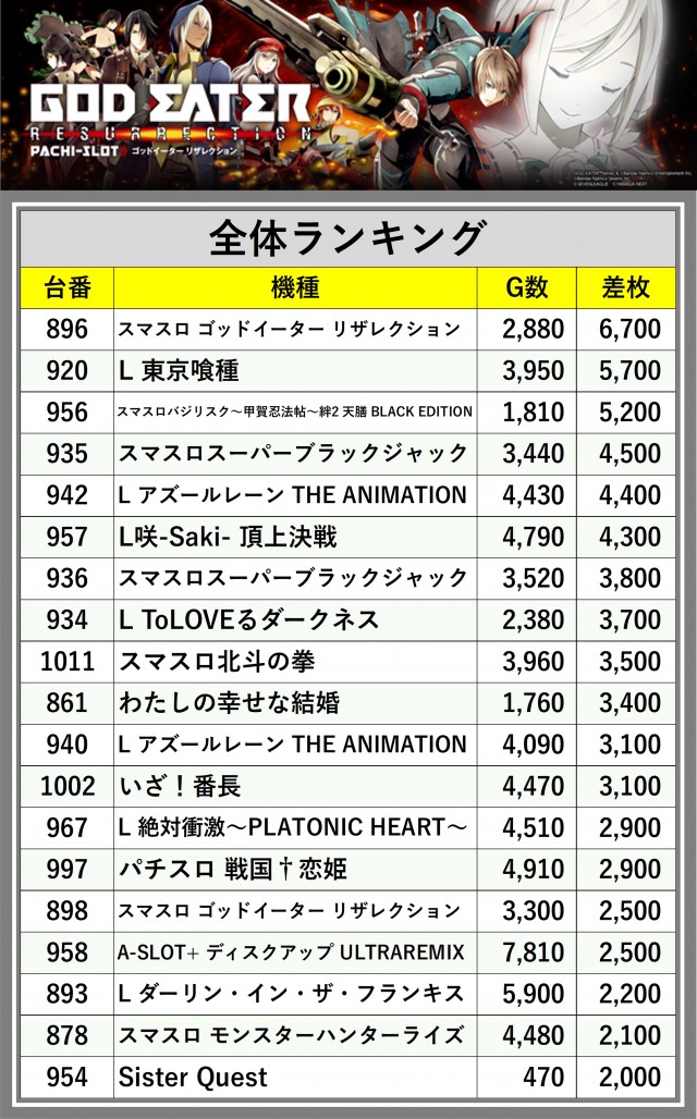 厳選された取材対象機種をはじめ、その他スロット全体から好記録が飛び出した!プレイヤーが楽しんだ1日を下記データにて振り返ってみて欲しい。