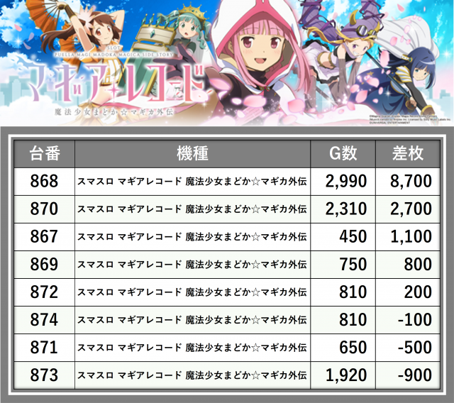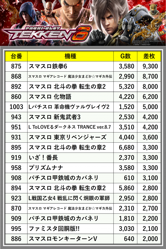 ※差枚数順に掲載しています