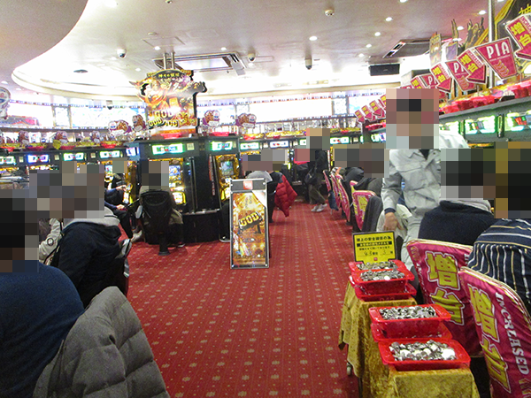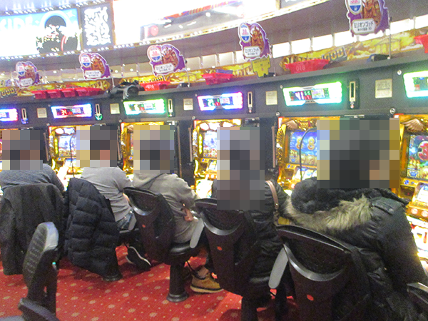店内に目を向けると、遊技を満喫しているといったプレイヤーが多数。日が沈んだ外とは対照的に、雰囲気はとても明るかった。
