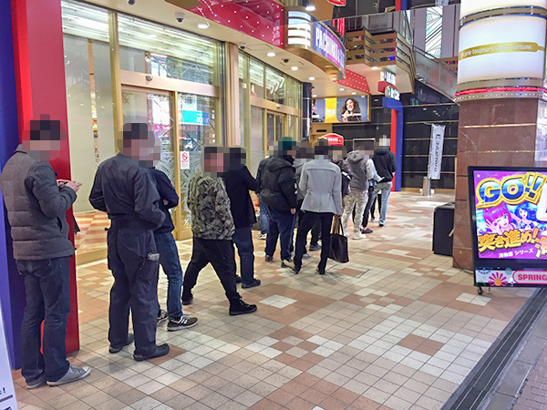 開店前からたくさんのプレイヤーが集結。各人、入店の時刻が来るのを心待ちにしているようだった。