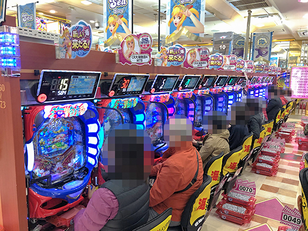 17時過ぎの4円パチンコでは、「CRスーパー海物語IN沖縄4」や「CR大海物語4」などの海物語シリーズが盛況で、機種のポテンシャルをフルに活かすプレイヤーを多数確認している。