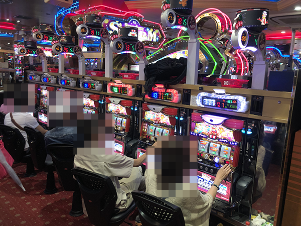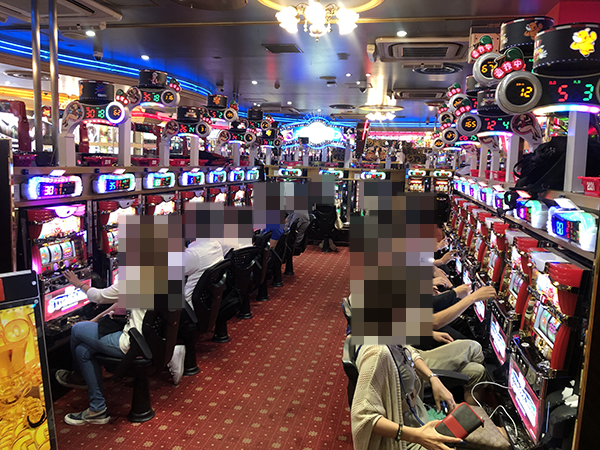 パチスロフロアで、とくににぎわいを感じたのはジャグラーシリーズが集められているコーナーだ。プレイヤーひとりひとりがシンプルなおもしろさを味わっていたように思う。