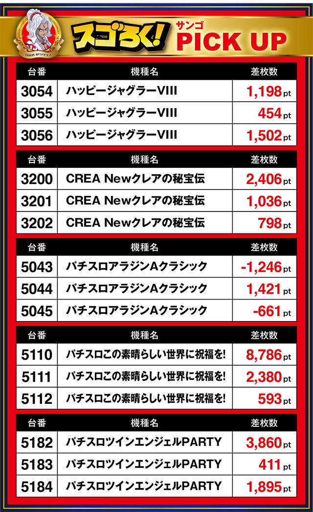 なかには8,000pt以上を記録した台もあったぞ。