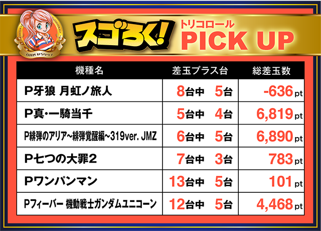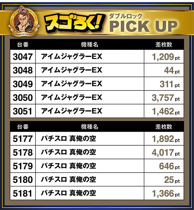 結果はというと、ピックアップした5台はすべてプラス。なかには、3,757ptを記録した台もあったぜ。