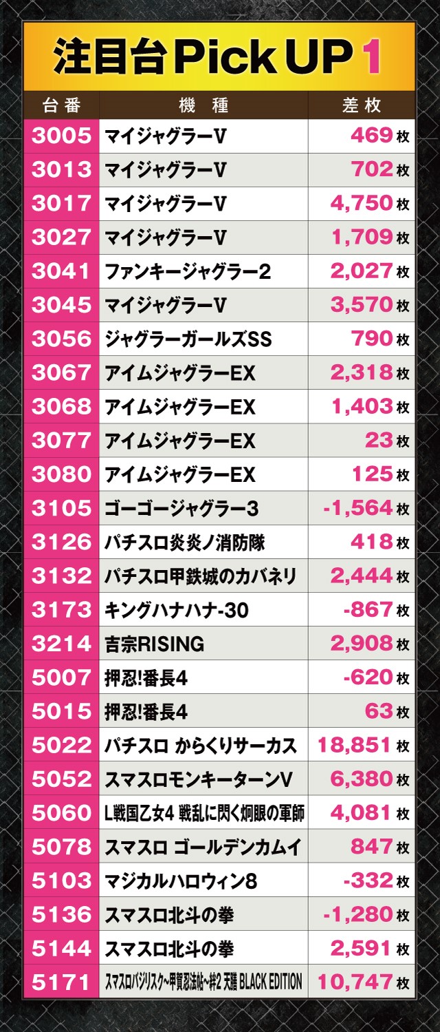 それだけではない。スマスロの盛り上がりも大きく、『パチスロ からくりサーカス』は+18,851枚、『スマスロバジリスク~甲賀忍法帖~絆2 天膳 BLACK EDITION』は+10,747枚と、万枚オーバーが2台も誕生していた!