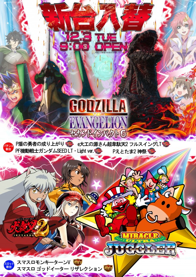 本日は新台入替!eゴジエヴァ、Lダンベル登場、Lかぐや増台!
