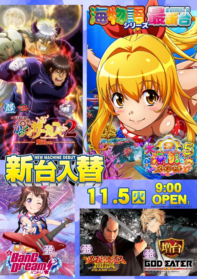 本日は新台入替!P大海5SP!スマパチからくり!他多数導入!