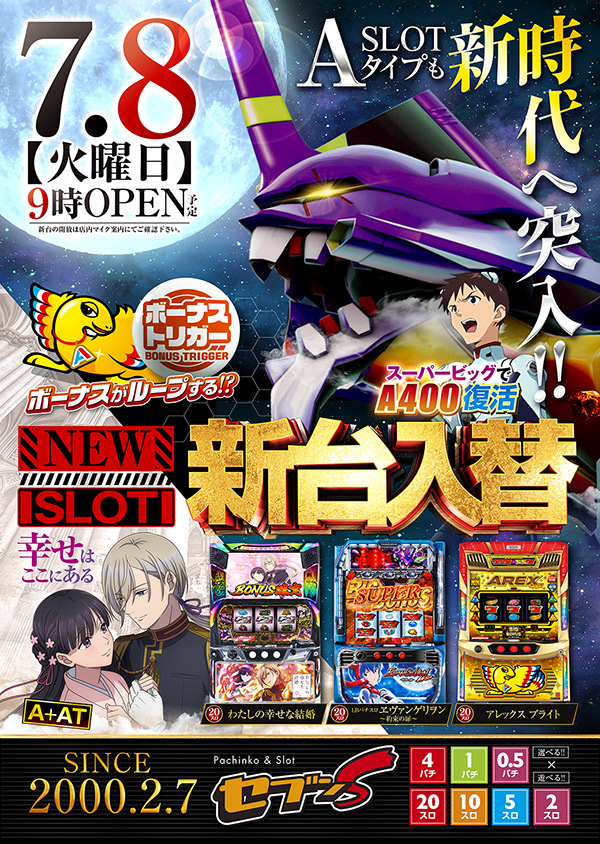 楽しさ充実★4パチ★1パチ★0.5パチ★20スロ★10スロ★5スロ★2スロ★選べるSEVENスタイル