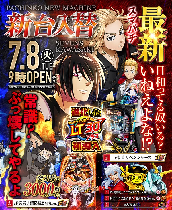 炎炎紅丸Ver.・東リベ・犬夜叉と最新3機種、ぜひお試しを!!
