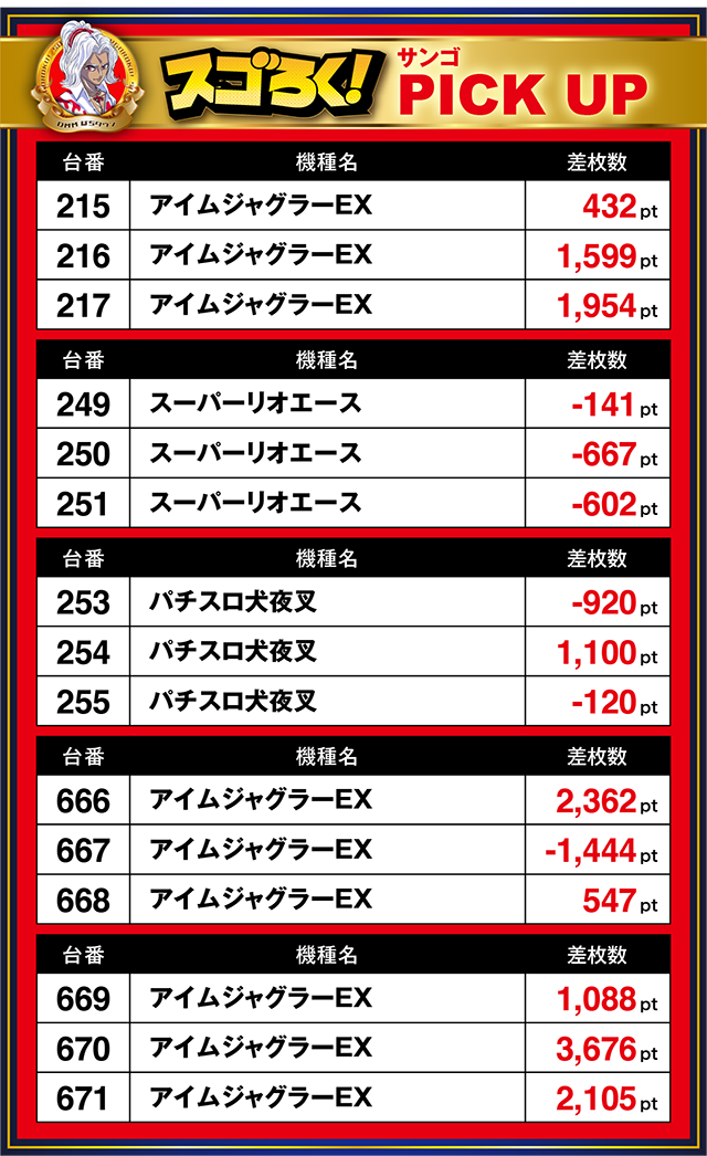 プレイヤーは遊技を満喫していたらしく、最終的に2,000ptを超えているデータを確認したぜ。