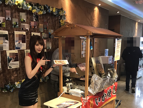 この日のホール内では、イカ焼きが無料で提供されていた。美味しそうな香りに、望ちゃんとプレイヤーも興味津々といった様子であった。