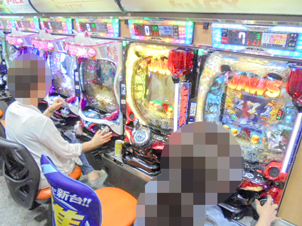 14時半ごろの4円パチンコを見ると、「ぱちんこCR真・北斗無双」や「CR JAWS再臨-SHARK PANIC AGAIN-」などが盛況。機種のポテンシャルをフルに活かすプレイヤーを複数目撃している。