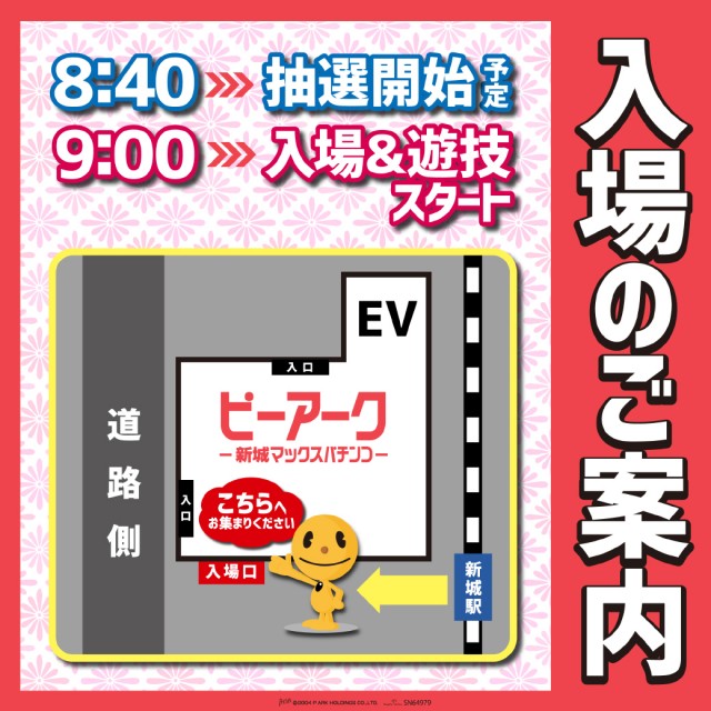 入場抽選時間 8:40 店舗正面入り口にお集まりください。 |