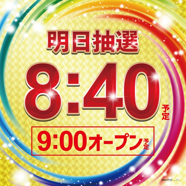 入場抽選時間 8:40 店舗正面入り口にお集まりください。 |