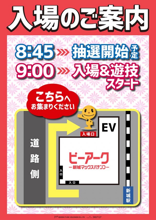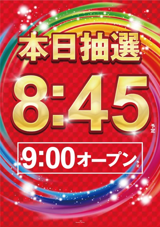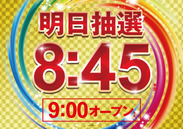 入場抽選時間 8:40 店舗正面入り口にお集まりください。 |