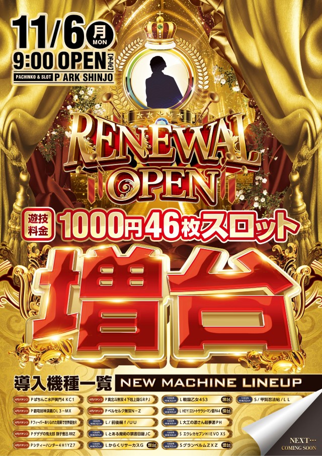 明日 46枚スロット増台 リニューアルオープン!!!!!