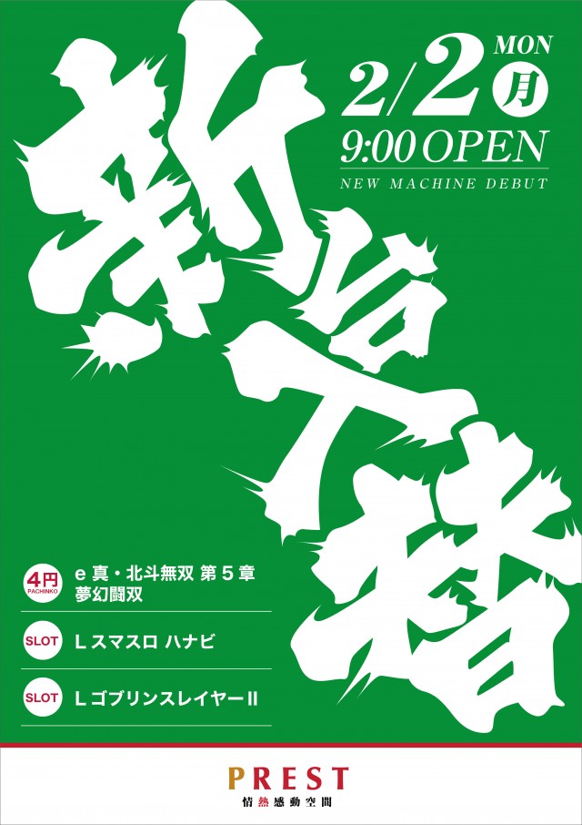 ✨2/2新台入替✨新台抽選会は14:00から✨