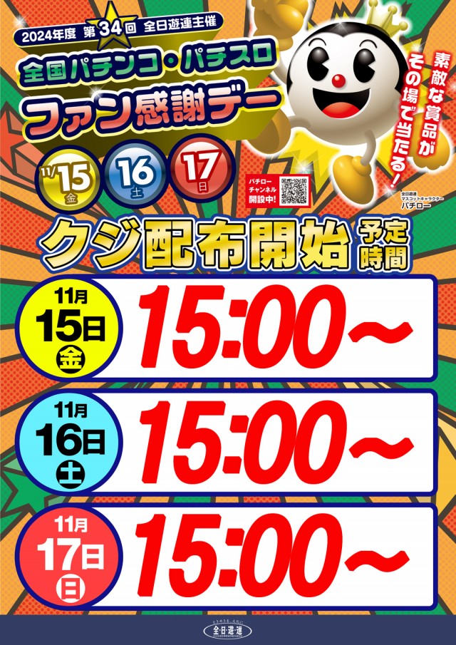 11月18日(月)新台入替と“ワクワク”の鐘がなる♪
