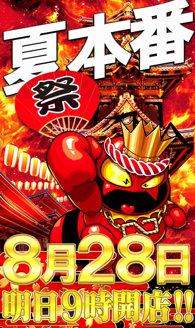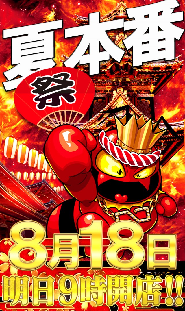 8月18日(日)お盆の連休の締めくくりも朝9時開店!!