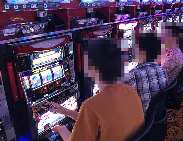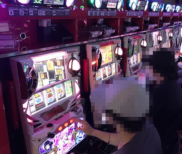 『SLOT魔法少女まどか☆マギカ』で遊技を楽しむプレイヤーもイキイキとレバーを叩き、有意義な時間を過ごしている様子。