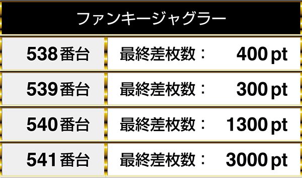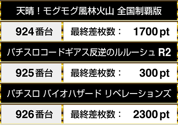 どちらの機種もプラスptでこの日を終えており、なかには3000ptを上回るデータもあった。
