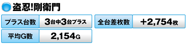 3台すべてがプラスで全台差枚数は+2,754枚だった。
